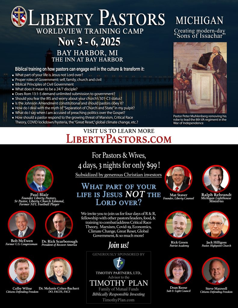 Liberty Pastors Training Camp – Michigan+ Add to Google Calendar+ iCal / Outlook export DateNov 03 - 06 2025 Time All Day Cost$99.00 More InfoRegister Here LocationThe Inn at Bay Harbor Resort3600 Harbor Drive, Bay Harbor, Michigan 49770-8577Organizer Liberty Pastors - Paul Blair Register HereShare this event